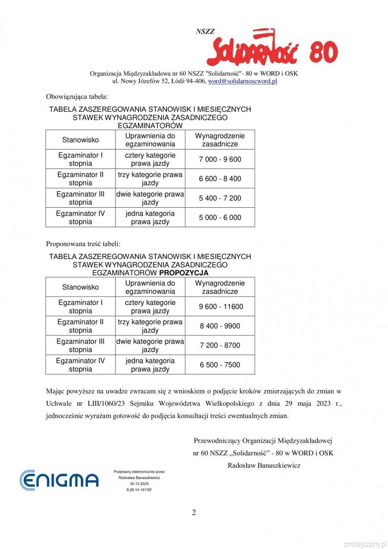 Wysłaliśmy petycję do Sejmiku Województwa Wielkopolskiego w sprawie wynagrodzeń egzaminatorów.